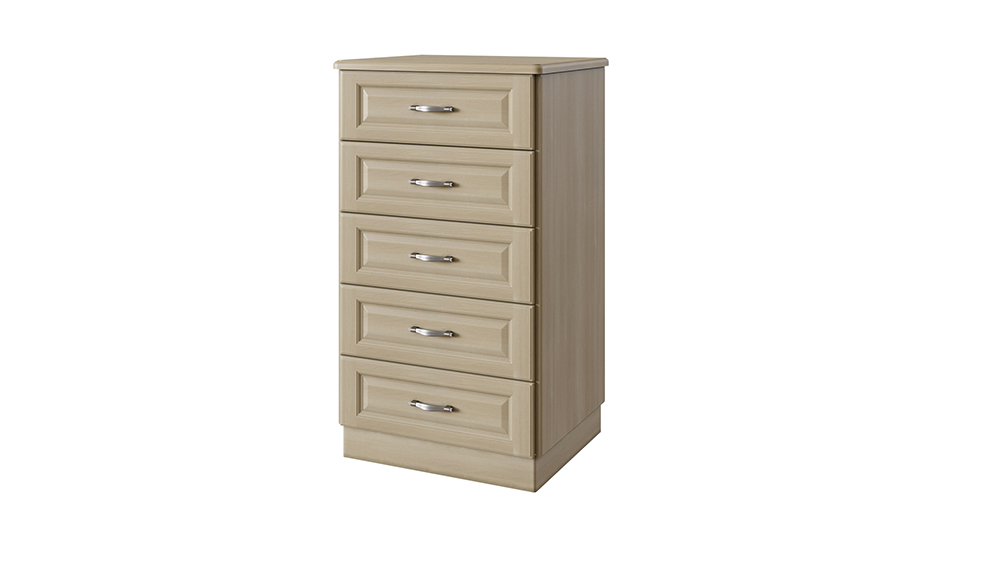Универсальный предмет мебели — изысканный и функциональный комод — колонка «Эдем» занимает минимальное место в спальне, благодаря своим компактным размерам. Пять вместительных выкатных ящиков оснащены телескопическими направляющими в базовой комплектации и могут быть направляющими с системой довода опционально. Разнообразие цветовых решений на массиве бука и ясеня позволяет легко дополнить интерьер любых цветовых решений. Сборка не требуется. Dreamline